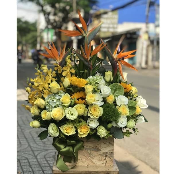 Sản phẩm Hoa tươi thành phẩm có thể gần giống với mẫu 95% - tùy thuộc vào cảm nhận của khách hàng vì là sản phẩm thủ công".
